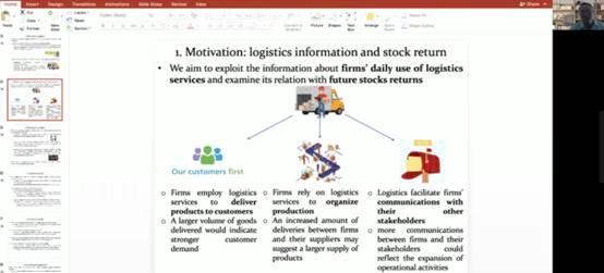 2021年1月5日下午,珞珈经管高端论坛第二十六期通过腾讯会议在线举行。此次论坛主讲人为香港中文大学(深圳)经管学院张博辉教授,论坛主题为“Does Express Delivery Run ahead of Stock Price?”(特快专递走在股价之前吗?)。本次讲座由金融系和yl6809永利官网金融科技研究中心主办,校内外约50余位师生参加本次学术论坛。